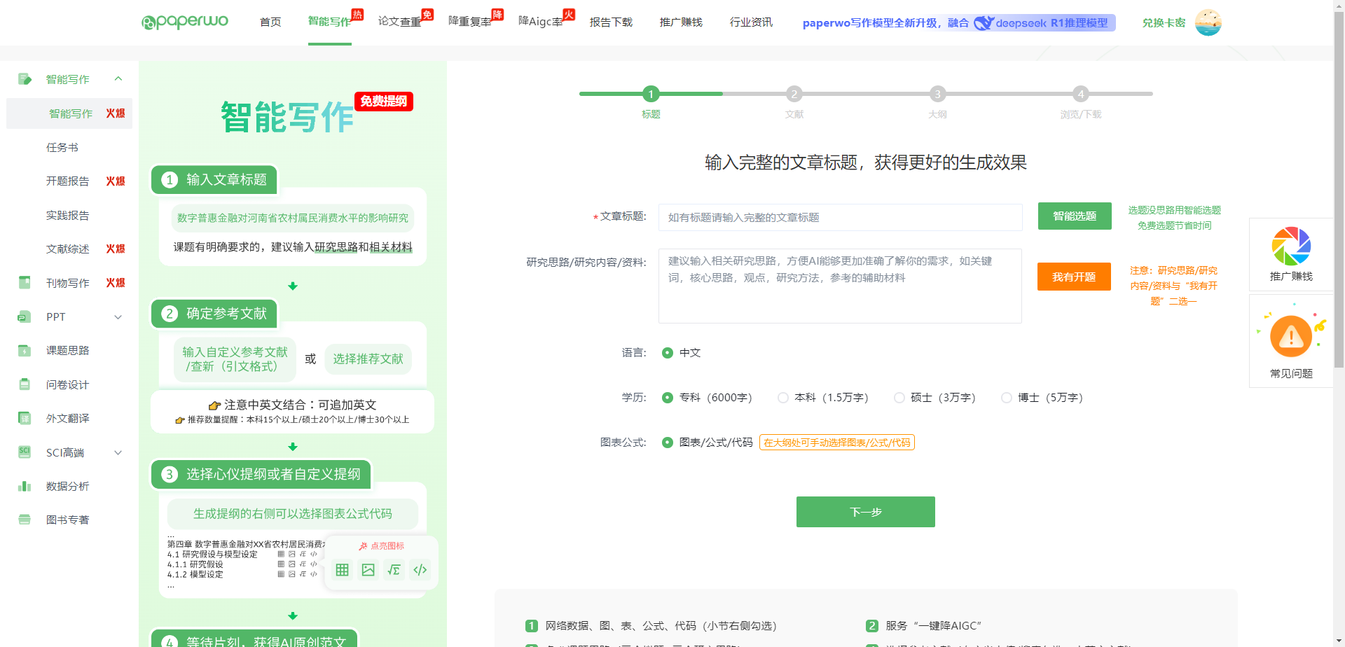 官网地址: https://www.paperwo.com/ai/dissertation